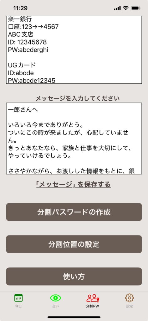 分割パスワードは、「会社」「ID」「パスワード」の情報をそれぞれ1行づつ入力することからスタートします。