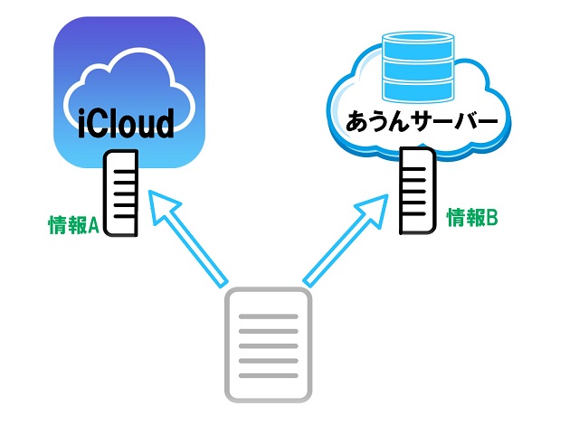 3.分割した情報を別々に、iCloud(情報A)とあうんサーバー(情報B)へ保存します